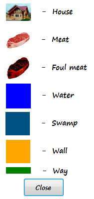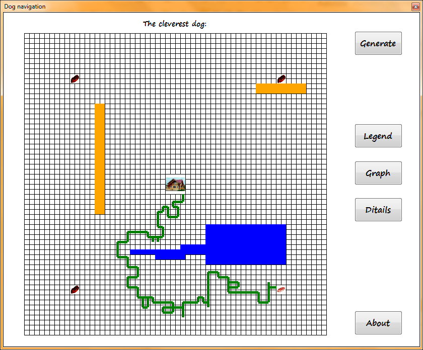- A dog explored in a grid-world find a sausage avoiding dangerous pond, river etc ... By Slusareva Maria