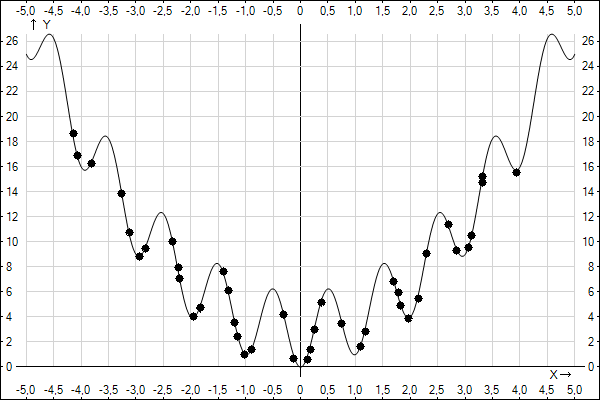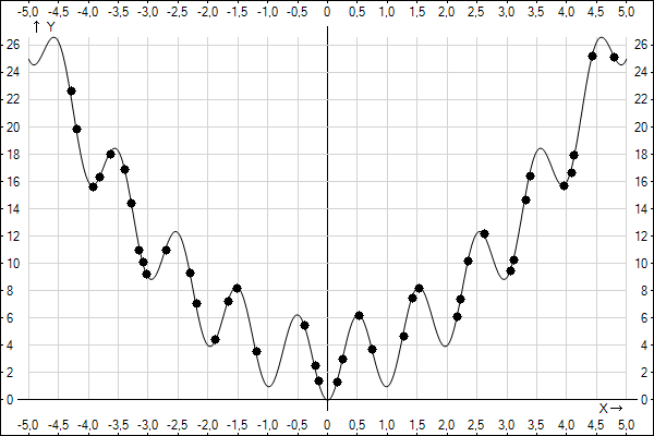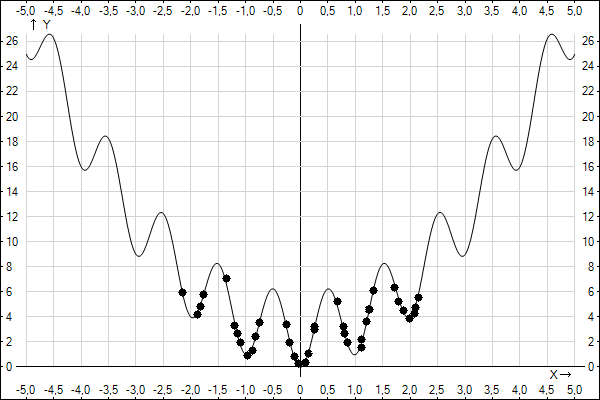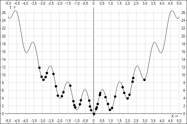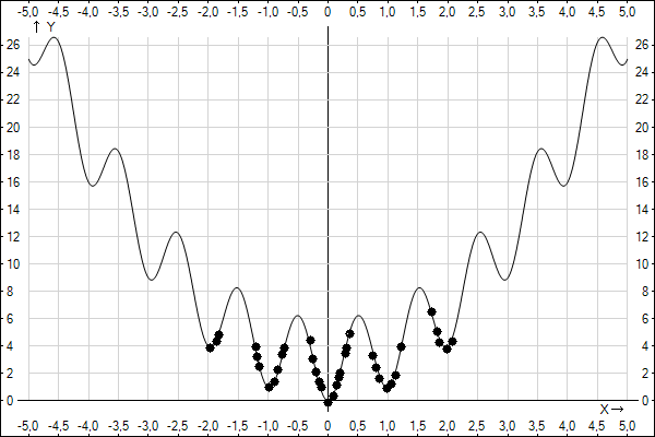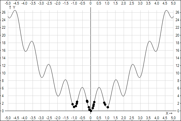 The minimum value of y is 0 as you can easily guess. Let's apply a Genetic Algorithm to this function.