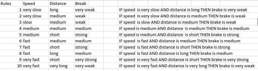 (ii) The other similar example of the rule "IF speed = slow AND distance = short THEN break = medium"