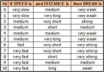 To de-fuzzify BREAK -- necessary BREAK value for specific value of SPEED and DISTANCE