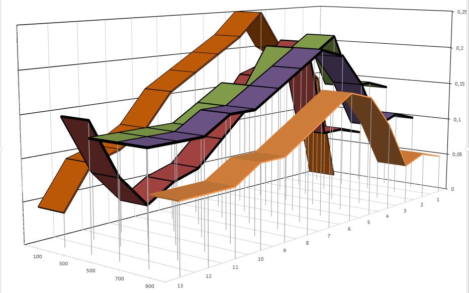 - For five fixed values of DISTANCE