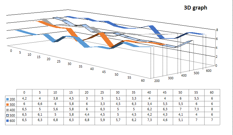 (One part of her results of distance=300 and speed=0,10,20,30,40,50)