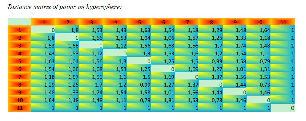 The target 10 random points in 10-D hyper-sphere ... By Korol Andrew