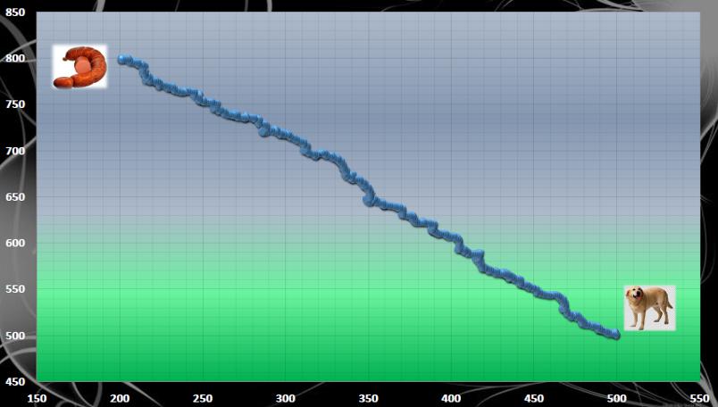 Despite of 4 sausages, all the dogs evolved to reach only one of the four sausages.