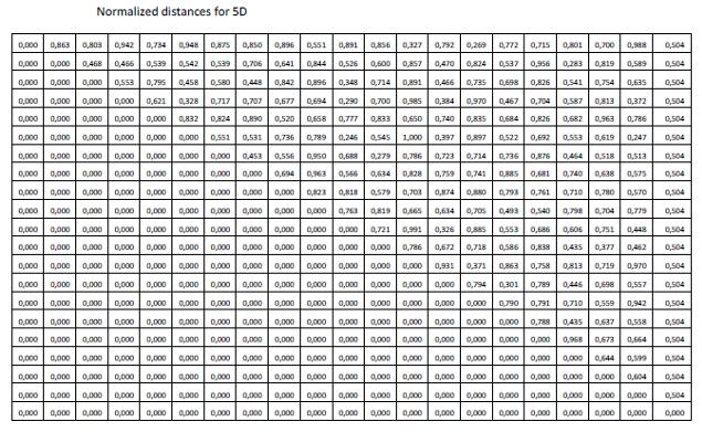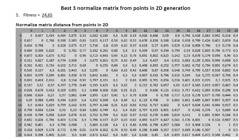 At the end of evolution, the 2D normalized distance matrix of the best chromosom was obtained.