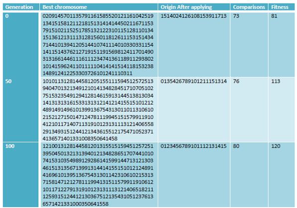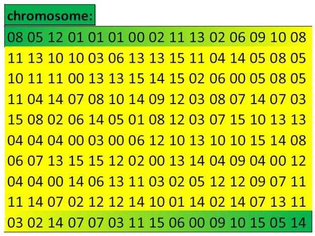Try to observe how a random chromosome with 150 genes with each value being 01-16 can sort 16 integers from 1 to 16