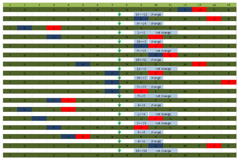 Then this diploydy chromosom compares the 16 letters one pair after another and exchange if necessary