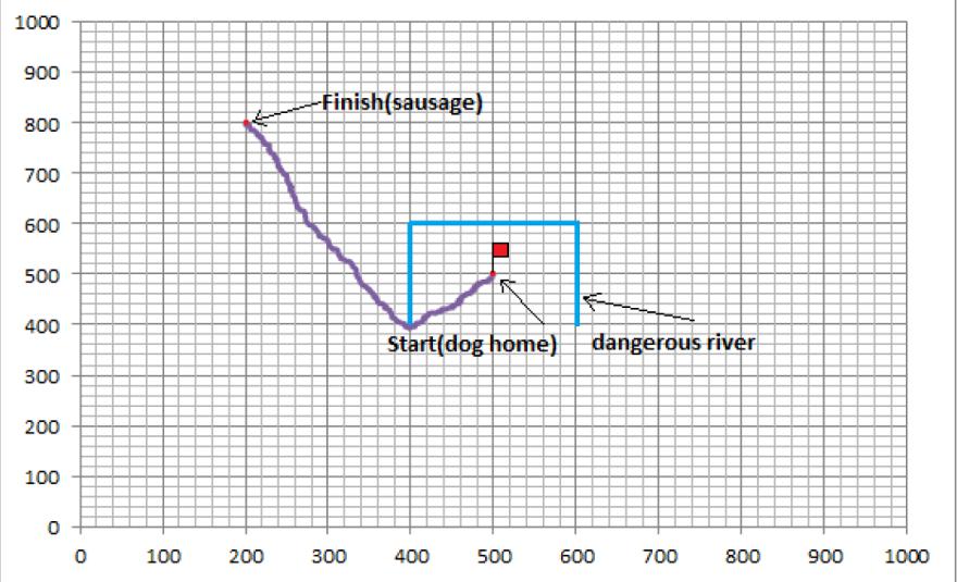 Lucky dog problem with one sausage again but this time dog should avoid a dangerous river (400,400)-(400,600)-(600,600)-600,400)