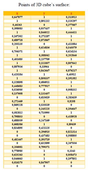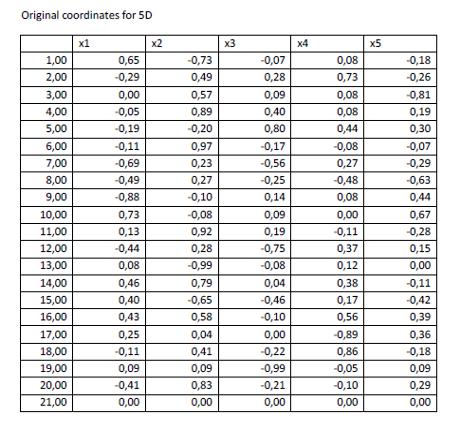 No one except for him showed the target 10-D coordinates of 10 points chosen rondomly from 10-D hyper-sphere surface. But more elaborate way such as table will be better!