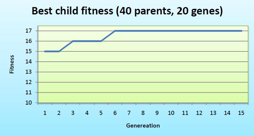 Important message of this result is maximum number of genes that enable to evolve perfect all-one chromosome is 17. When the number of genes is 20, it's no more possible to all-one chromosome.