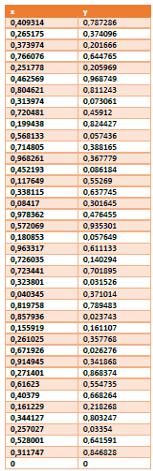 A set of 40 points in 2D of a random chromosome in the 1st generation (Left), and its graphics (Right)