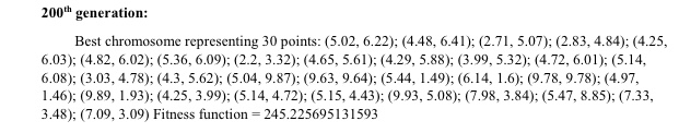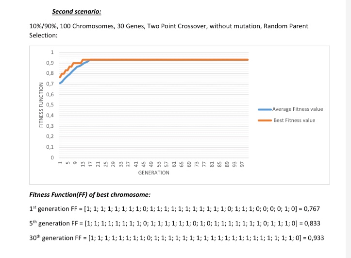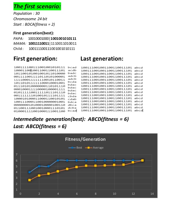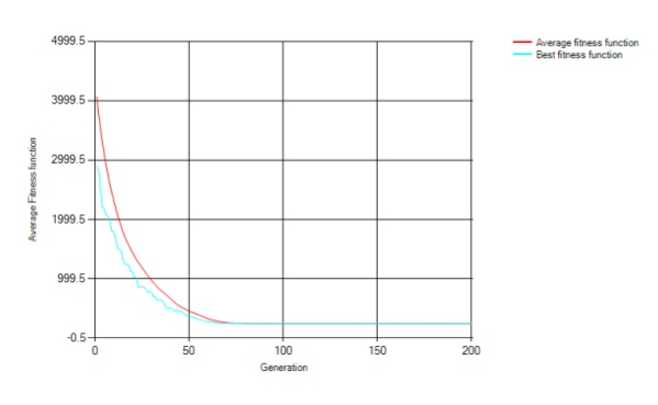 the best chromosome in the generation at the beginning (random), intermediate (all almost zero), and final (all zero hopefully).