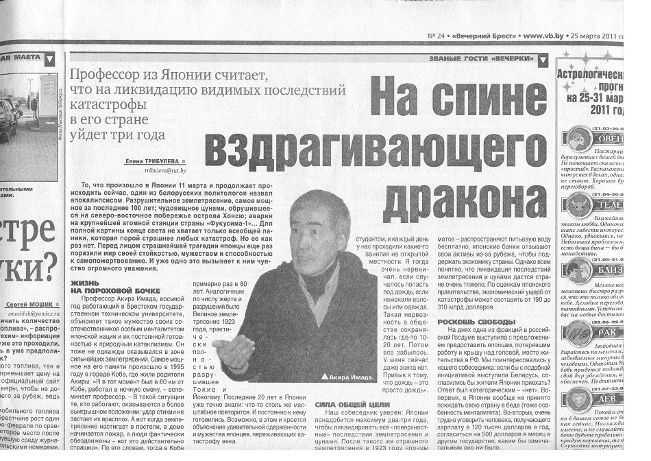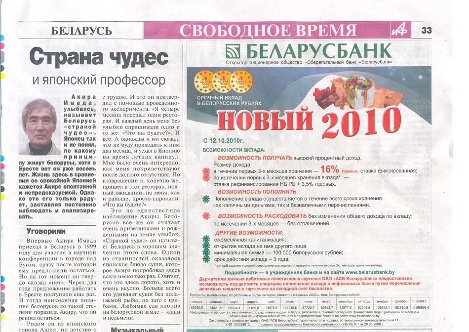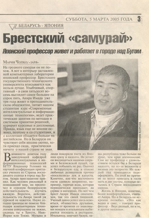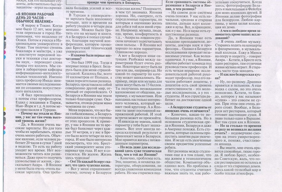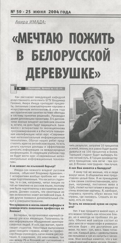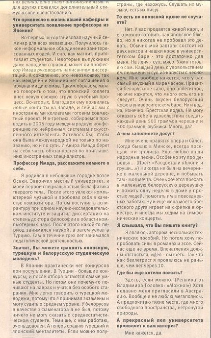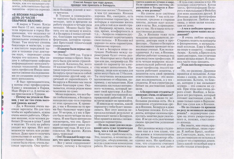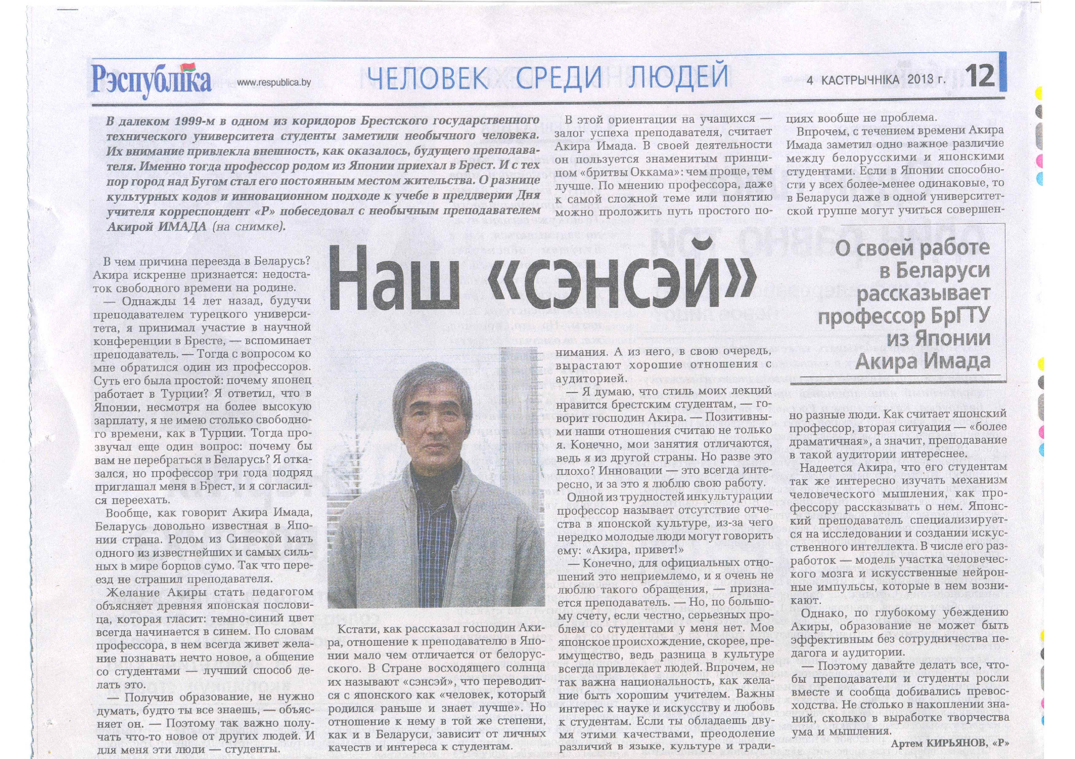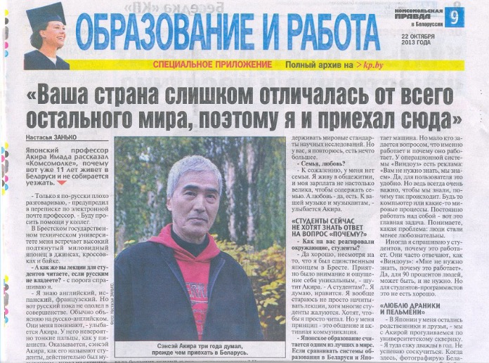 It was "Teacher's Day" in Belarus on 6 October 2013. This was the reason why I was interviewed by the Minsk newspaper The "Republic." The title was "Our Sensei" which means "Our Teacher."