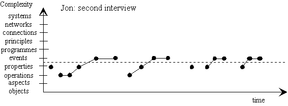 Figure 3: Complexity-time-diagram of the cognitive development of Jon during the first interview